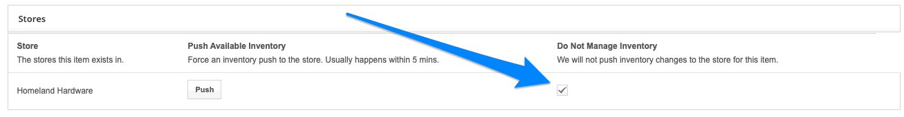 2. Scroll down to find the "Stores" section and you'll see "Do Not Manage Inventory". Check this box.