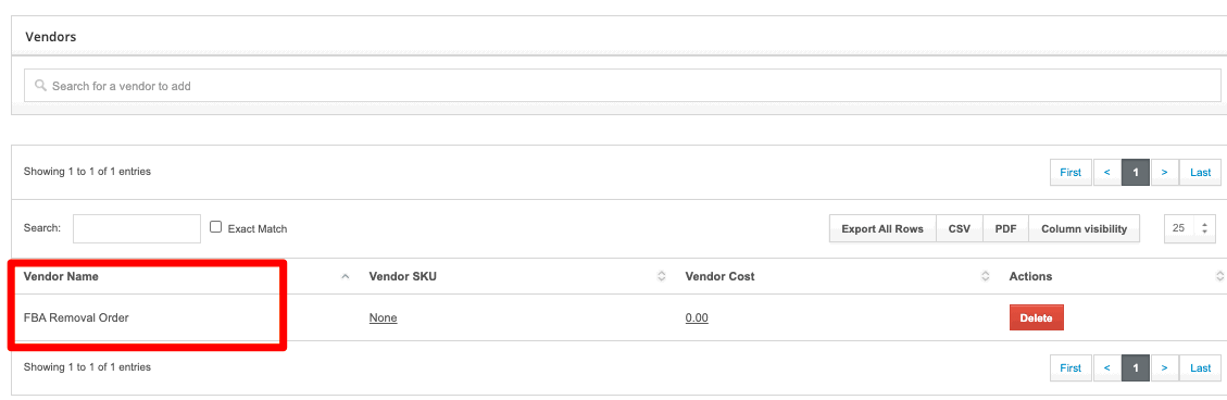 You should see the Vendor added below after you have clicked the matched Vendor listing: