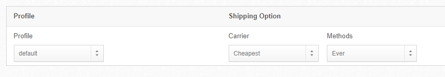 For Profile and Shipping Option, select the following: